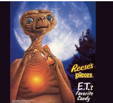1982 - When E.T. famously reached for Reese's Pieces, it wasn't just a win for intergalactic friendship but a masterstroke in product placement that marketers still talk about. This scene didn't just boost Reese's sales; it showed the power of aligning a brand with the right moments, highlighting the impact of smart, memorable marketing.