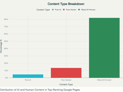 Not because Google prefers humans, but because the best pages balance AI’s efficiency with human insight. The most useful (and therefore the best-performing) content combined human insight with AI efficiency, not AI generation with human review.