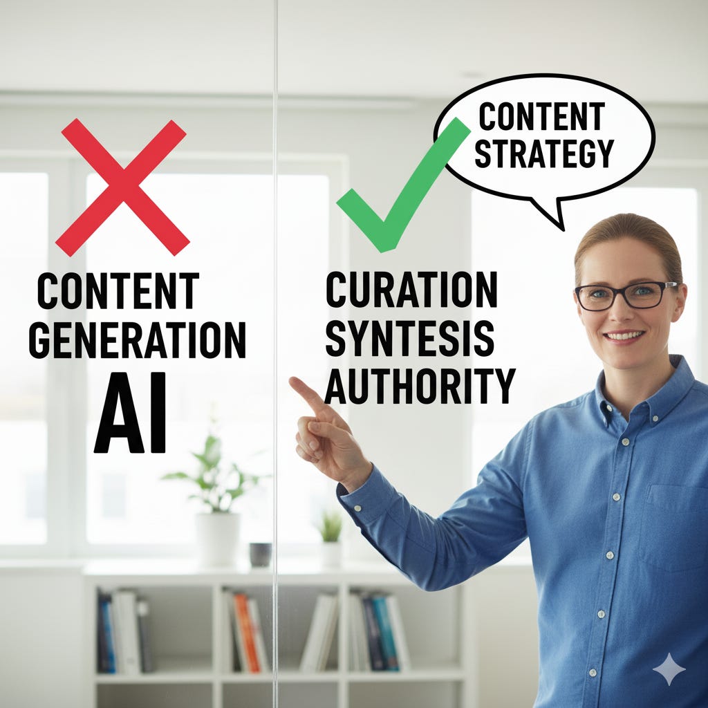 Why does curation scale better than volume? Because authority travels faster than output.